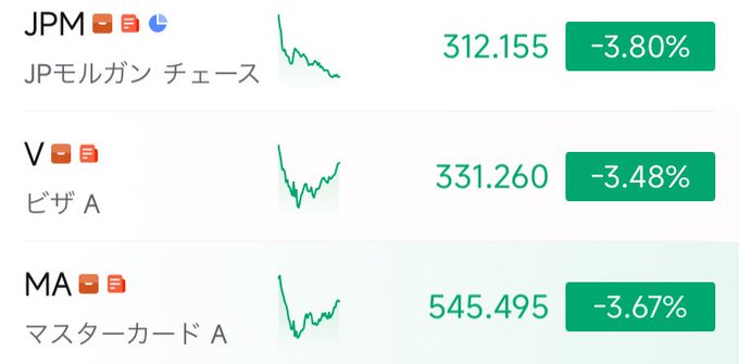 新たなトランプ砲の影響で米国株の金融銘柄めちゃくちゃ下げてる。