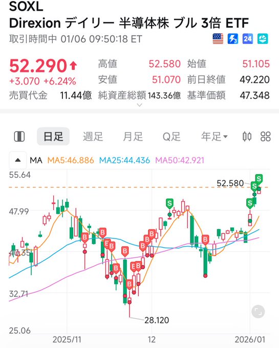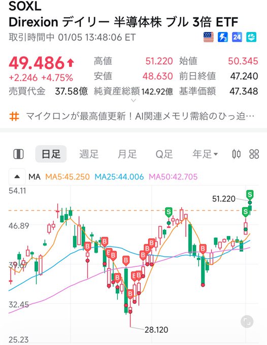 インテル爆下げで時間外でSOXL下落中。