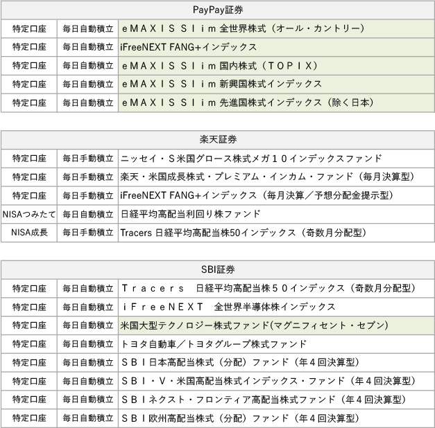 過去のデータを見てあれこれ言うのも意味ないので、実際に毎日積立やってるリストです。