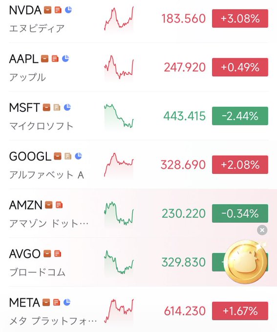 アップル、アマゾン、メタ、アルファベット、ネットフリックス、エヌビディア、マイクロソフト、ブロードコム、クラウドストライク、サービスナウの10社が代表的です