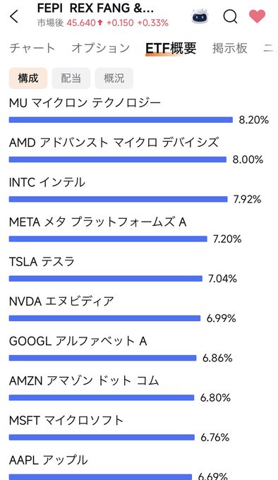 いつの間にかFEPIの構成銘柄にマイクロンが入ってる。