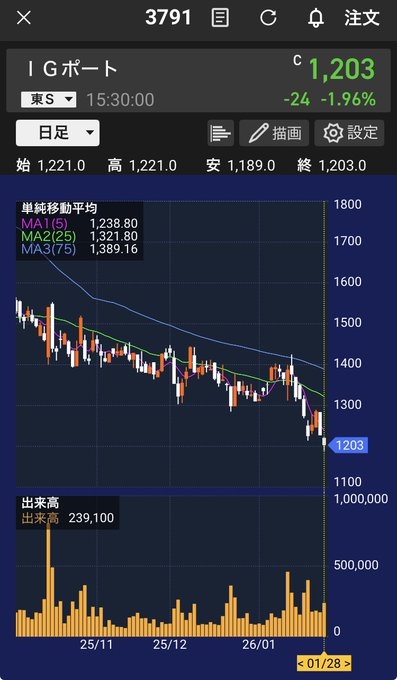 何度も上げる振りしてさらなる下落していくIGポート。