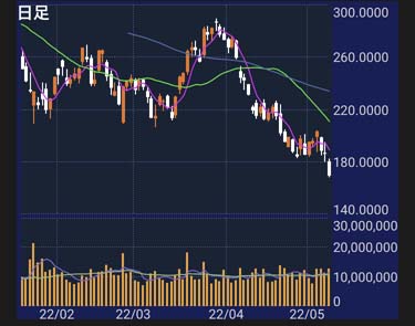 モーサテで紹介された銘柄です。3月末までに上昇していて「これは期待できる」と喜んでいたのですが、4月後半から急降下していきました。