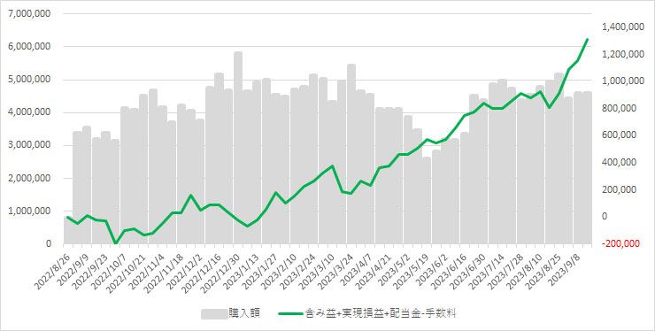 実現損益(累積):3,423,572 円 先週比 +78,116 円