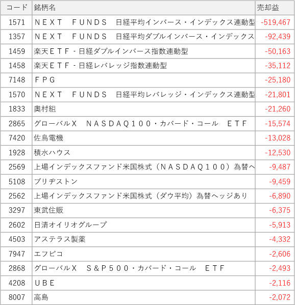 日経インバ、日経ダブルインバ、楽天ダブルベアで-662,069円です。