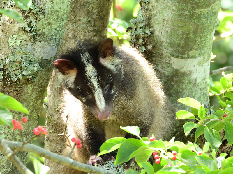木に猫がいるのかと少し近づいてみると、なんとハクビシンです。どうやらメジロを狙っているようですが、メジロは太い枝にはとまりません。
